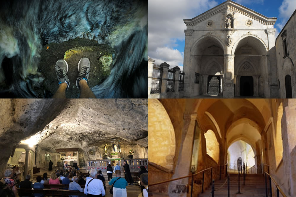 Nie miałam pojęcia, gdzie mnie zabiera i nie było czasu na szukanie informacji w sieci. W chwili, gdy minęliśmy bramę nowoczesnego B&B opodal Vieste, zanurzonego w oliwnych gajach schodzących ku morzu, dostrzegłam w ogrodzie małą kapliczkę poświęconą Archaniołowi Michałowi. – „To ziemia Achanioła Michała” – wyjaśnił gospodarz, gdy go o nią spytałam – „Jest dla niego święta. Sam ją wybrał” – dodał. Po czym poprowadził nas do recepcji z wielkim plakatem na ścianie, przedstawiającym coś, co wyglądało jak podziemna grota zaadaptowana na chrześcijański kościół. – „Jedźcie tam zamiast plaży” – oznajmił rozkazująco – ‘W pogodzie na jutro zapowiadają deszcz’.